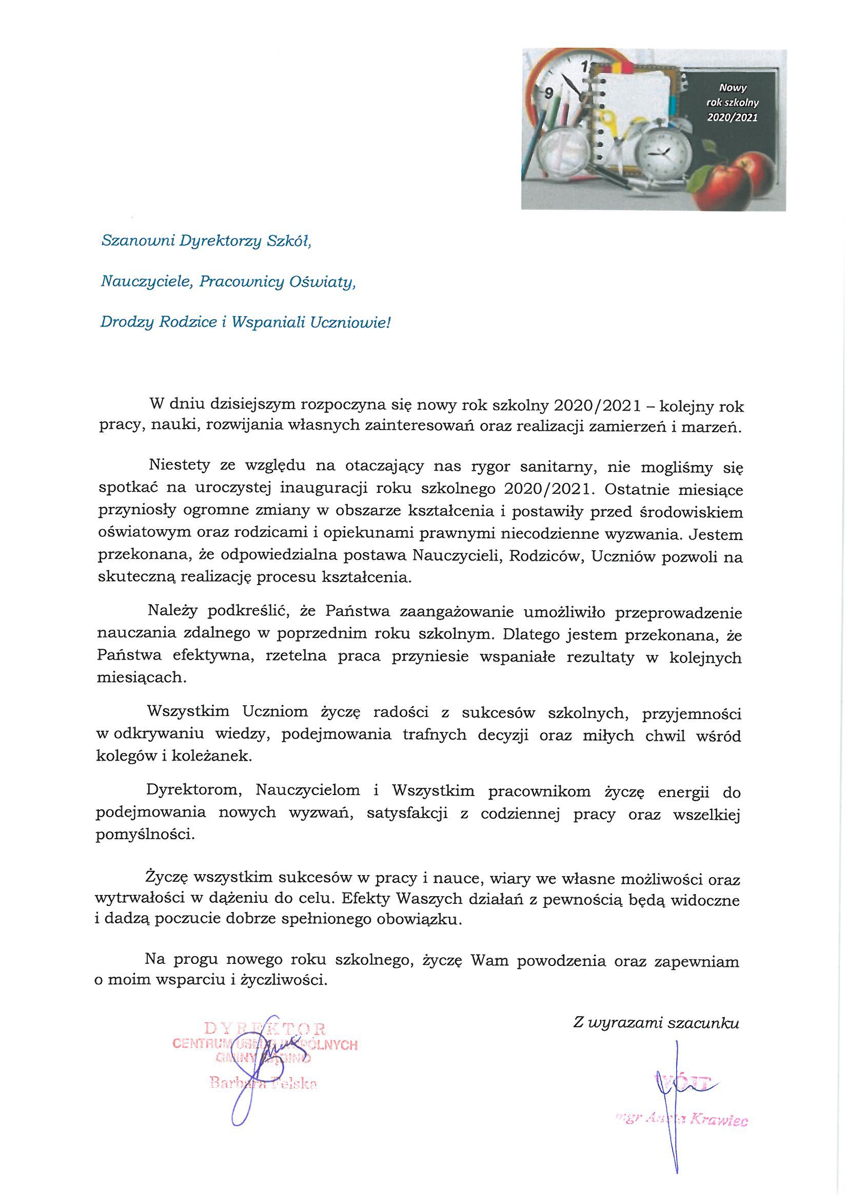 BIP > CUW Gminy Rąbino > Aktualności > Życzenia na nowy rok szkolny 2020/2021